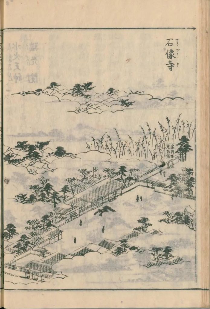 家隆山石像寺は千本通五辻の北にあり、浄土宗にして本尊阿弥陀仏は菅公の御作なり。地蔵堂には弘法大師の作り給ふ立像の石地蔵あり。〔信ずるに感応ありて霊験いちじるし、石像寺の号これより出たり〕前上総介藤原朝臣家隆卿の塔あり。